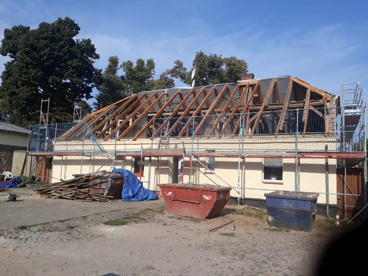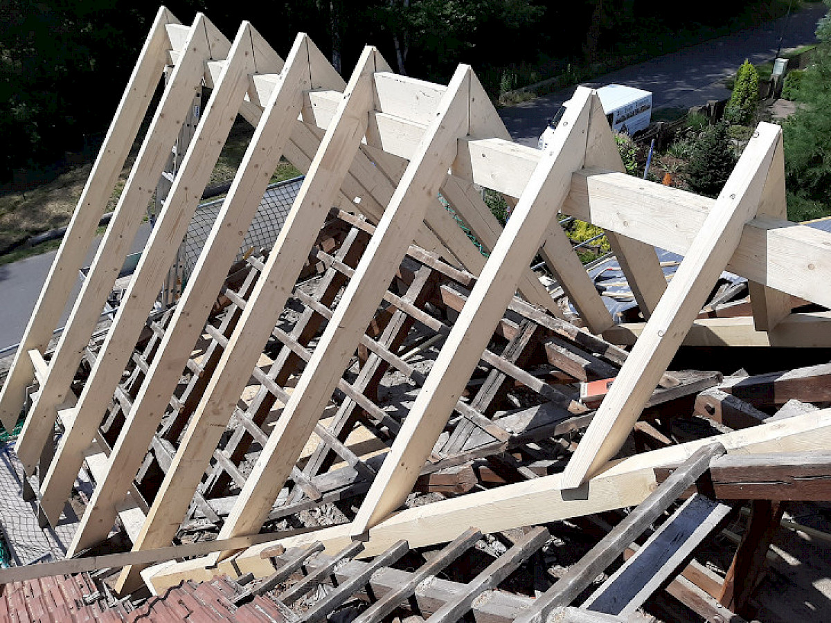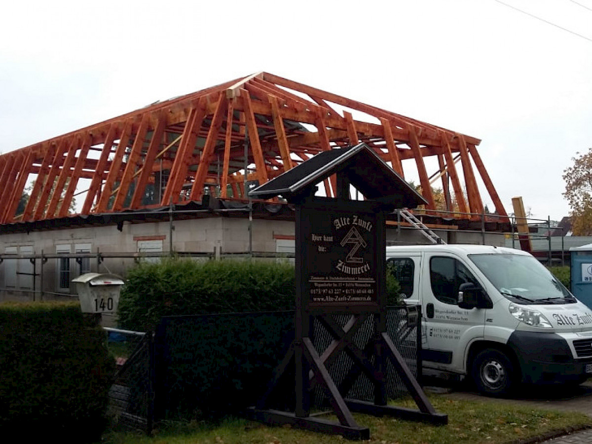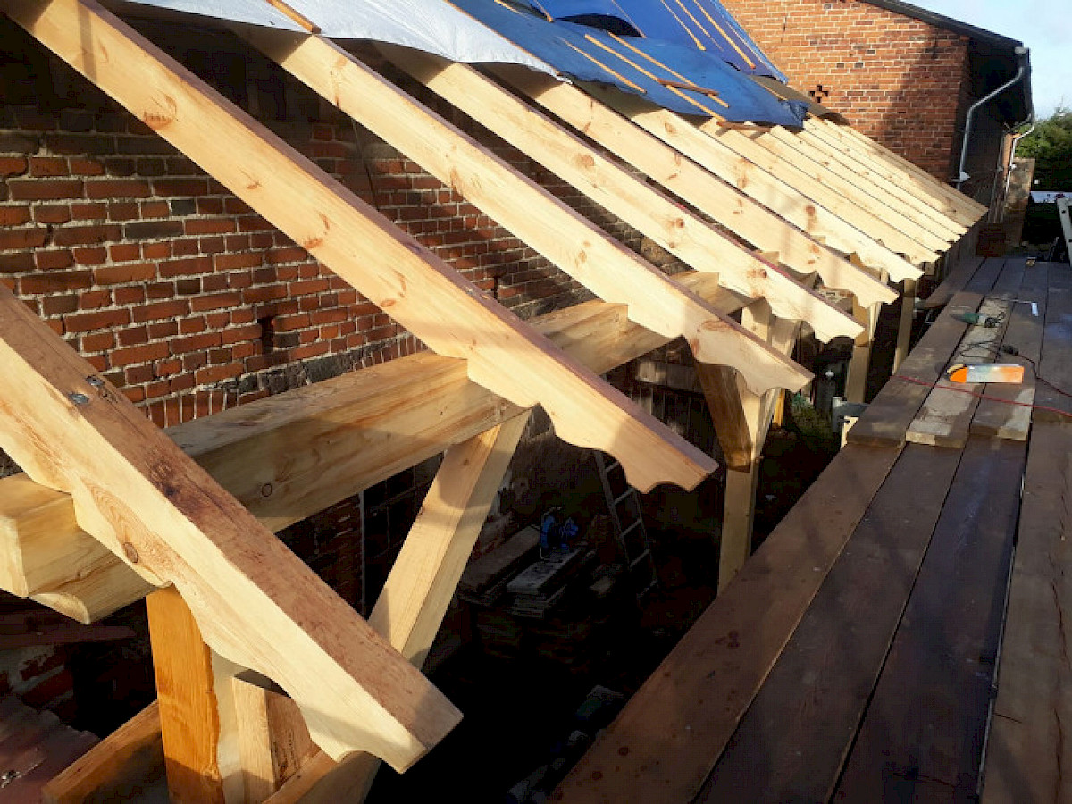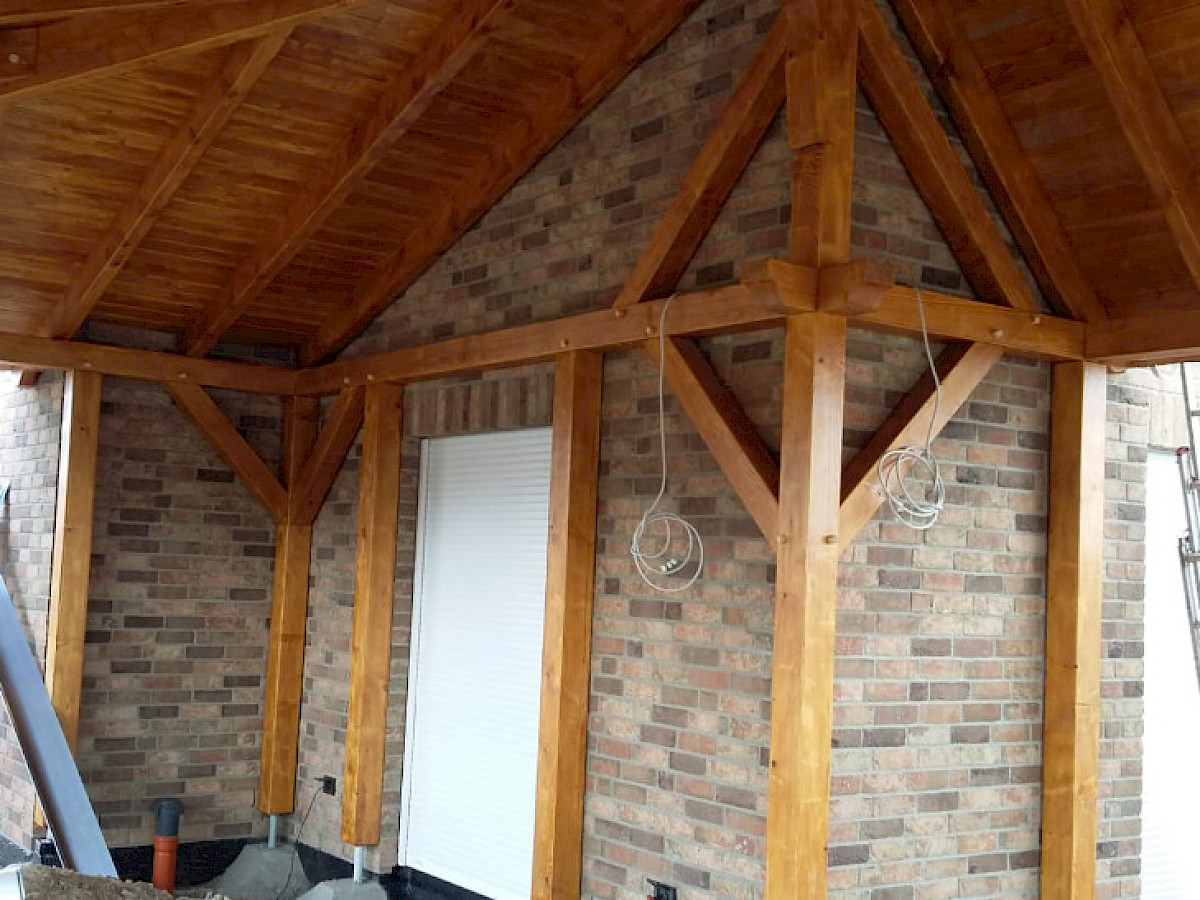 Wir bieten komplette Neubauten, Altbauten, Umbauten sowie Anbauten jeder Art, umfassende Renovierungen und auch Sanierungen an. Traditionell abgebundene Dachstühle stellen wir selbst her. Es können aber auch Binderdachstühle bestellt werden.
